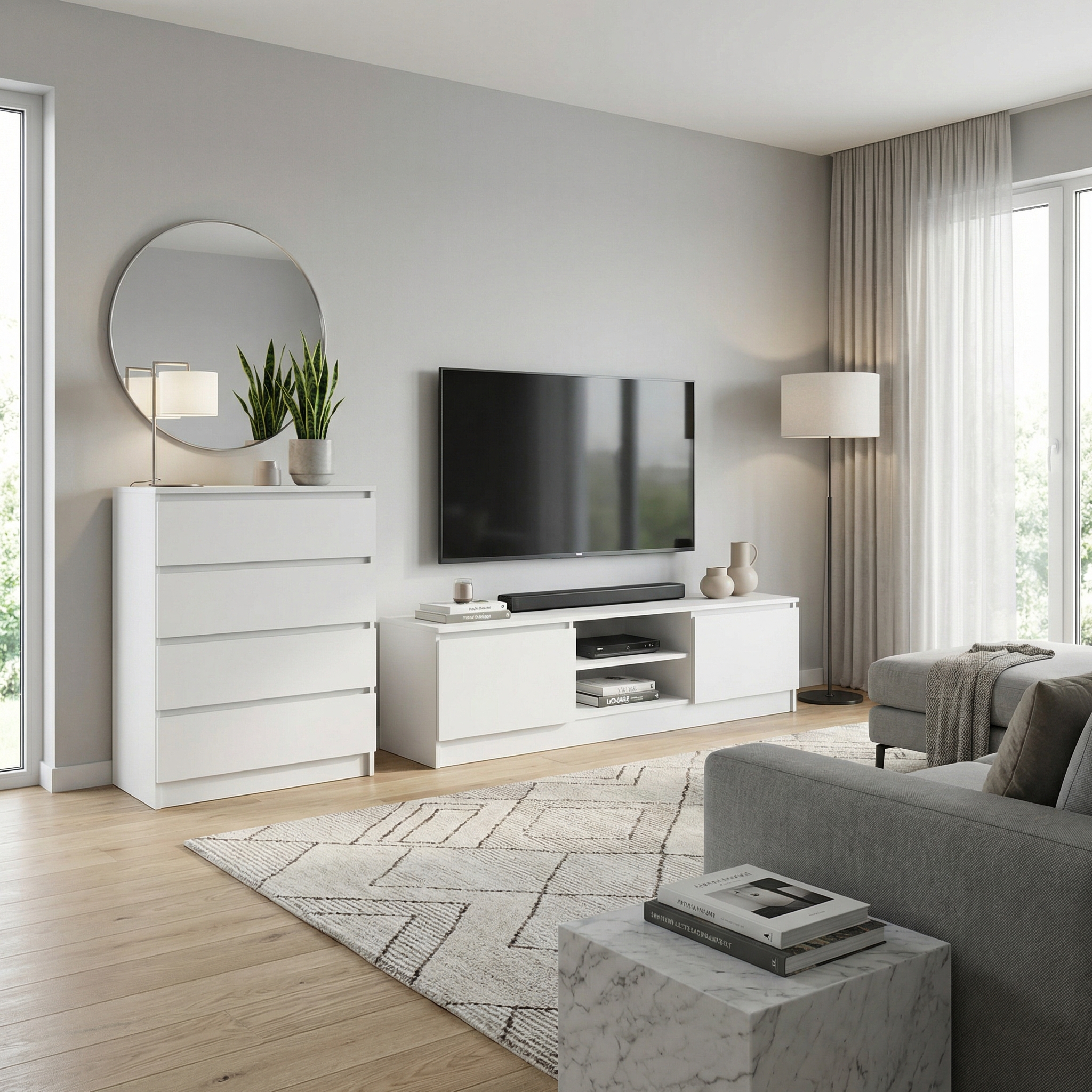 W ofercie kolekcji MAJA znajdują się: szafka rtv oraz komody, utrzymane w tej samej stylistyce. Dostępne są różne szerokości, liczba szuflad i wersje kolorystyczne – co pozwala łatwo dobrać meble odpowiednie do indywidualnych potrzeb i charakteru wnętrza. Kolorystyka: Kaszmir, Biały mat, Dąb cremona.